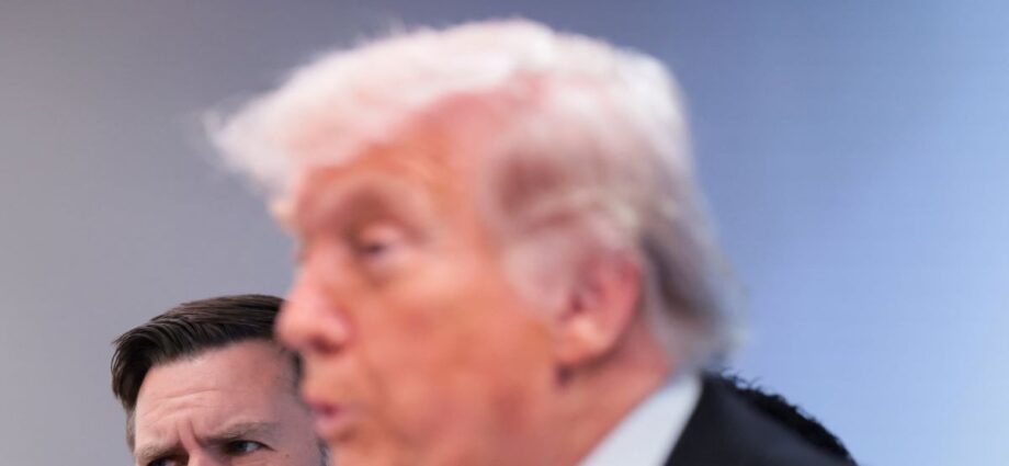Ο Ντόναλντ Τραμπ στη συνέντευξη Τύπου μετά τους πυροβολισμούς και στο βάθος ο Τζέι Ντι Βανς / REUTERS/Kylie Cooper