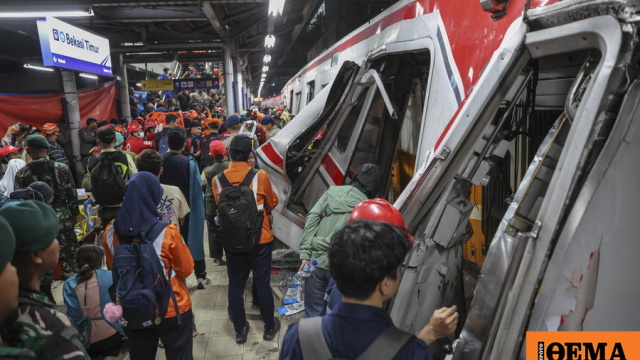 Δύο επιβάτες παραμένουν παγιδευμένοι στις παραμορφωμένες λαμαρίνες βαγονιού μετά τη σύγκρουση συρμών σε σιδηροδρομικό σταθμό κοντά στην Τζακάρτα – Βίντεο καταγράφει τη στιγμή που συνέβη το δυστύχημα