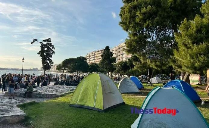 Θεσσαλονίκη: Φοιτητές στήνουν αντίσκηνα στον Λευκό Πύργο – «Η ιστορία έχει μια σωστή πλευρά – Με την Παλαιστίνη»