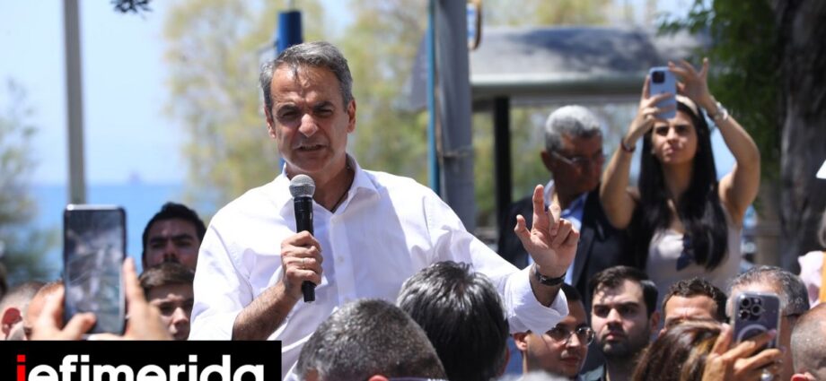 «Το γαλάζιο Φάληρο. Εδώ που το γαλάζιο της ΝΔ συναντιέται με το γαλάζιο της θάλασσας, το γαλάζιο του ουρανού, το γαλάζιο της σημαίας μας για μία Ελλάδα ισχυρή, για μία Ελλάδα υπερήφανη στην Ευρώπη. Γι αυτό θα ψηφίσουμε στις εκλογές της 9ης Ιουνίου», τόνισε.