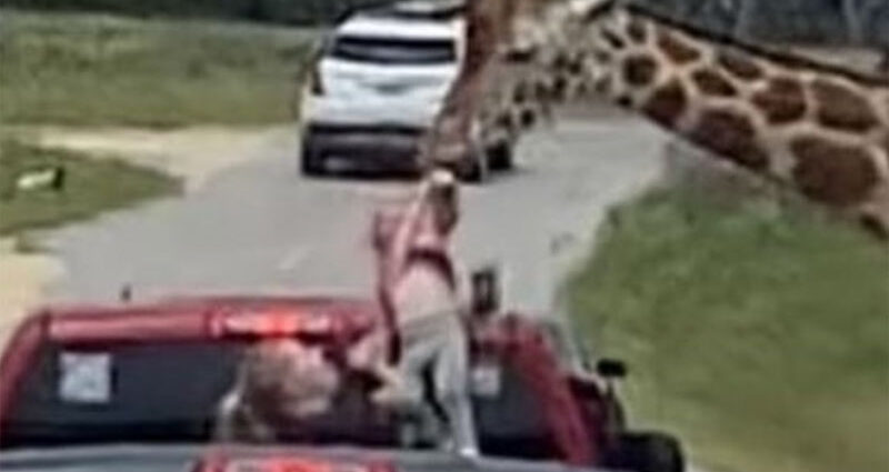 Momento cuando una jirafa del Fossil Rim Wildlife Center de Texas, saca a una niña de 2 años del auto donde viajaba.El animal agarró por error la camiseta de la niña al tratar de tomar alimentos que estaban cercanos a la… Πηγή