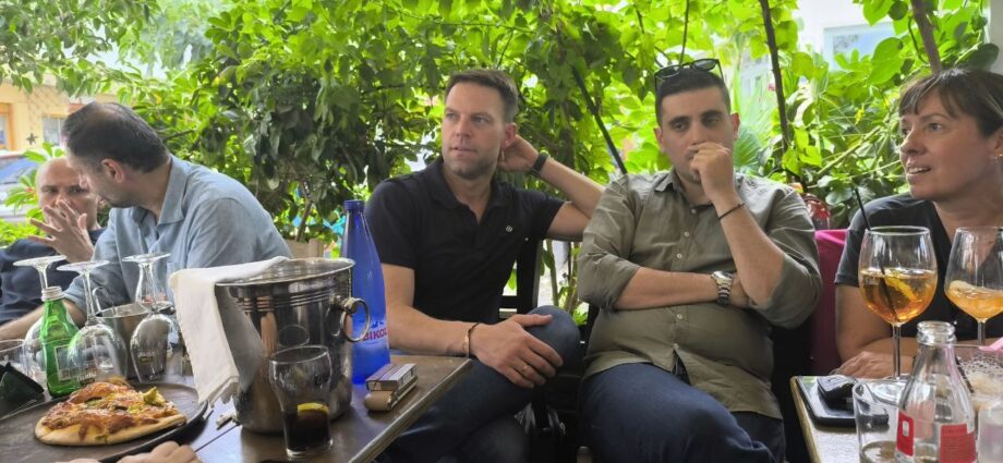 Χαλαρές στιγμές με τους διαπιστευμένους συντάκτες πέρασε το μεσημέρι του Σαββάτου 8 Ιουνίου ο πρόεδρος του ΣΥΡΙΖΑ – Προοδευτική Συμμαχία, Στέφανος Κασσελάκης. Ο αρχηγός της αξιωματικής αντιπολίτευσης έφτασε στον χώρο εστίασης που είχε δοθεί το ραντεβού, στην περιοχή του Θησείου, περί τις 14:00, μαζί με τον σύζυγό του Τάιλερ Μάκμπεθ.