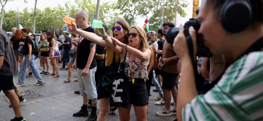 Angry mob of ‘anti-tourism’ protesters use water pistols to drench foreign visitors at restaurants in Barcelona – as thousands march on Catalan capital and call for tourists to ‘go home’ pic.twitter.com/OET7kviseE— Elijah (@Elijahwasike) July 7, 2024
